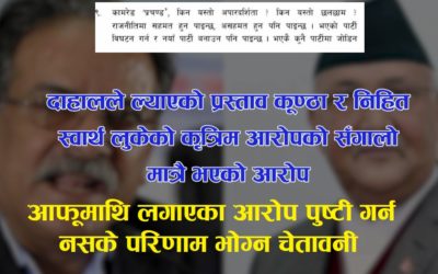 मंसिर १३, काठमाण्डौ । नेकपा अध्यक्ष केपी शर्मा ओलीले कार्यकारी अध्यक्ष पुष्पकमल दाहालले ल्याएको प्रस्ताव