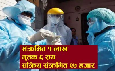 असोज २३, काठमाण्डौ । नेपालमा कोरोना संक्रमितको संख्या एक लाख नाघेको छ । पछिल्ला दिनमा