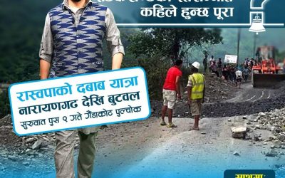 काठमाडौं,६ पुस । राष्ट्रिय स्वतन्त्र पार्टी (रास्वपा) ले नारायणगढ बुटवल सडकखण्डको स्तरोन्नति गर्न माग गर्दै