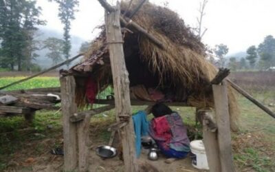 सिरहा, पुस ५। परालले छाएको सानो छाप्रो। एकातिर काठ र अर्कातिर परालकै बोझाले बारबेर गरेर