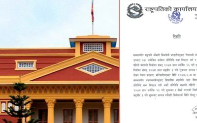 काठमाडौं, जेठ ८ । राष्ट्रपति विद्यादेवी भण्डारीले प्रतिनिधिसभा विघटन गरी आगामी कातिक २६ गते पहिलो