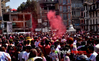 काठमाडौं, चैत १३। उपत्यकाका तीन जिल्ला काठमाडौं, ललितपुर र भक्तपुरका सार्वजनिक स्थानमा भीडभाड गरी फागु