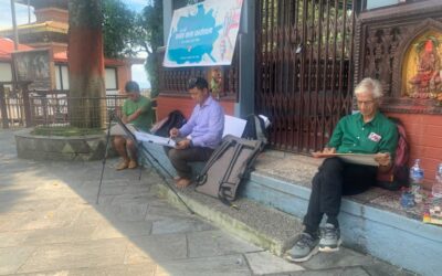 पोखरा, साउन २१ । पोखराको विन्ध्यवासिनी मन्दिर परिसरमा व्यङ्ग्य चित्रकार दुर्गा बराल ‘वात्स्यायन’ क्यानभासमा चित्र