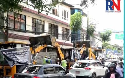 काठमाडौं, १६ साउन । निर्माण व्यवसायीहरुले प्रधानमन्त्रीको सरकारी निवास अगाडि डोजर तेर्स्याएर प्रदर्शन गरेका छन्