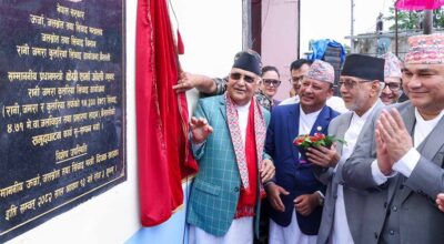 काठमाडौं, १३ साउन । प्रधानमन्त्री केपी शर्मा ओलीले रानी जमरा कुलरिया सिँचाइ आयोजनाको सिँचाइतर्फको थप
