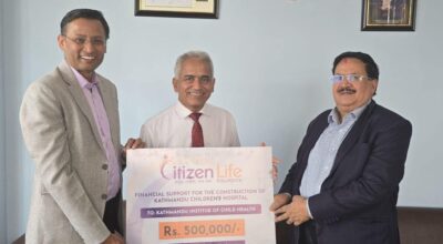 काठमाडौं, १९ चैत । काठमाडौं बाल अस्पताल निर्माणका लागि सिटिजन लाइफ इन्स्योरेन्सले ५ लाख सहयोग