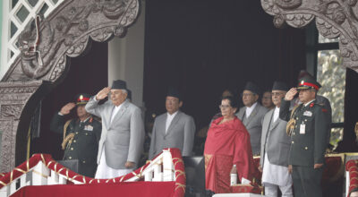 काठमाडौँ, १६ चैत । राष्ट्रपति रामचन्द्र पौडेलले घोडेजात्रा २०८१ का अवसरमा नेपाली सेनाद्वारा आज टुँडिखेलमा