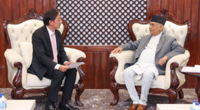 काठमाडौँ, १२ चैतः प्रधानमन्त्री केपी शर्मा ओलीसँग नेपालका लागि थाइल्याण्डका राजदूत सुवापोङ सिरिसोर्नले आज शिष्टाचार