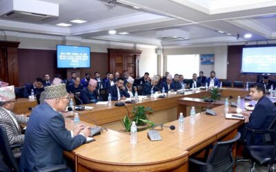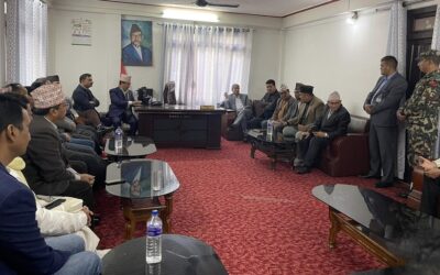 काठमाडौं । गृहमन्त्री रमेश लेखकले नेपाली कांग्रेसका १४ जिल्ला सभापतिहरूसँग छलफल गरेका छन्। कोशीका १४