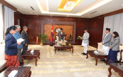 काठमाडौं । प्रधानमन्त्री केपी शर्मा ओलीसमक्ष राष्ट्रिय सूचना आयोगका नवनियुक्त प्रमुख आयुक्त ड। सुरेशप्रसाद आचार्यले