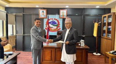 काठमाडौँ, १० असोज । अर्थमन्त्री रामेश्वर खनालसमक्ष नेपाल बिमा प्राधिकरणको अध्यक्षमा नियुक्त जनकराज शर्माले आज