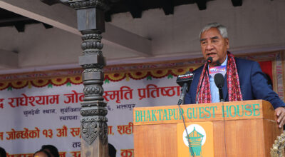भक्तपुर, २५ जेठ । नेपाली कांग्रेसका सभापति एवं पूर्वप्रधानमन्त्री शेरबहादुर देउवाले मुलुकमा प्रजातन्त्र स्थापनाका लागि