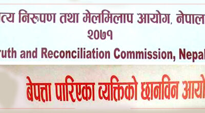 -कालिका खड्का काठमाडौँ, २५ जेठ । सङ्क्रमणकालीन न्यायसम्बन्धी दुई आयोगमा पदाधिकारी नियुक्ति भएसँगै बाँकी काम