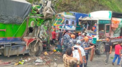 चितवन, जेठ ८ । चितवनको भरतपुर महानगरपालिका-२९ गाइघाटमा दुईवटा ट्रक एकआपसमा ठोक्किंदा सात जना घाइते