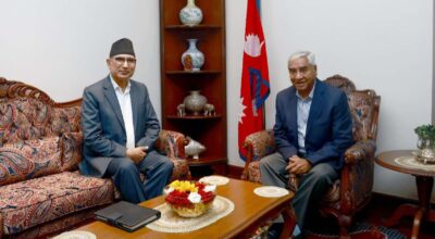 काठमाडौँ, २२ वैशाख । उपप्रधान एवं अर्थमन्त्री विष्णुप्रसाद पौडेलले नेपाली कांग्रेसका सभापति शेरबहादुर देउवासँग आगामी