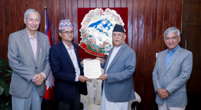 काठमाडौँ, २१ वैशाख । प्रधानमन्त्री केपी शर्मा ओलीसमक्ष नेपाल कम्युनिष्ट पार्टी(एमाले)का सांसद सूूर्यबहादुर थापाले प्युठान