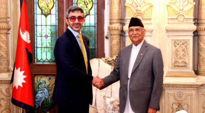 काठमाडौँ, १० वैशाख । प्रधानमन्त्री केपी शर्मा ओलीसँग संयुक्त अरब इमिरेट्स (युएई) का उपप्रधानमन्त्री एवं
