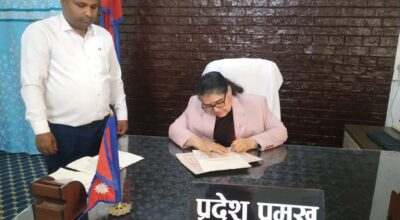 महेन्द्रनगर (धनुषा), १९ चैत । मधेस प्रदेशका प्रमुख सुमित्रा सुवेदी भण्डारीले प्रदेशसभाबाट पारित भई प्रमाणीकरणका