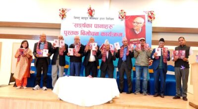 काठमाडौँ, २९ चैत । वामनेता विष्णुबहादुर मानन्धरको आत्मवृत्तान्त ‘सङ्घर्षका पानाहरू’ बजारमा आएको छ । काठमाडौँमा