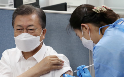 १० चैत : दक्षिण कोरियाका राष्ट्रपति मुन जाय इनले मंगलबार कोरोनाविरुद्धको खोपको पहिलो डोज लगाएको
