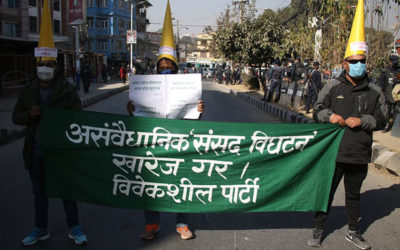 काठमाडौं, २४ पुस । संसद विघटनको विरोधमा विवेकशील पार्टीले माइतीघर मण्डलामा प्रदर्शन गरेको छ ।