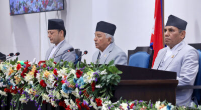 काठमाडौँ, २७ चैत । राष्ट्रपति रामचन्द्र पौडेलले सङ्घीय संसद्को दुवै सदनको संयुक्त बैठकलाई गरेको सम्बोधनका