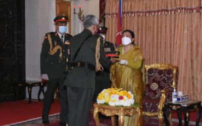 काठमाडौं २० कार्तिक। राष्ट्रपति विद्या देवी भण्डारीले भारतीय स्थल सेनाध्यक्ष मनोजमुकुन्द नरवणेलाई नेपाली सेनाको मानार्थ