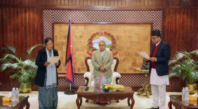 काठमाडौँ, १ पुस ।प्रधानमन्त्री सुशीला कार्कीसमक्ष राष्ट्रिय योजना आयोगका नवनियुक्त उपाध्यक्ष डा प्रकाशकुमार श्रेष्ठ र