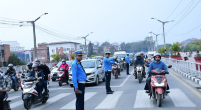 काठमाडौँ, २३ चैत । काठमाडौँ उपत्यकामा सवारी दुर्घटनाको जोखिम न्यूनीकरण गर्ने उद्देश्यले ट्राफिक प्रहरीले काठमाडौँ