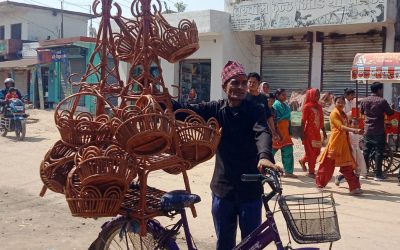 कञ्चनपुर, २० फागुन । कञ्चनपुरको कलुवापुर बजारमा आफूले निर्माण गरेको बेतबाँसका सामग्री बिक्री गर्न साइकलमा