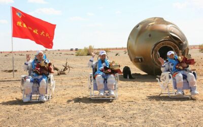 बेइजिङ, ३ वैशाख । चीनको नयाँ अन्तरिक्ष स्टेशनमा छ महिनापछि शनिबार तीन अन्तरिक्ष यात्रीे पृथ्वीमा