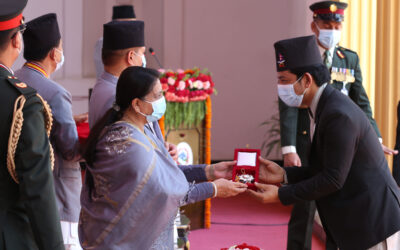 काठमाडौं, १ वैशाख । राष्ट्रपति विद्यादेवी भण्डारी राष्ट्रपति भवन शीतलनिवासमा बिहीबार मुस्कान खातुनलाई जनसेवाश्री मानपदवी