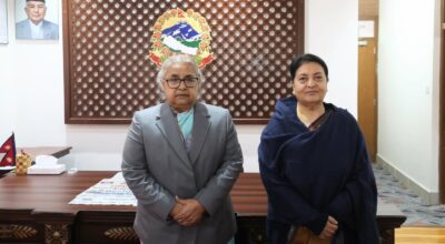 काठमाडौं, २१ मंसिर । प्रधानमन्त्री सुशीला कार्की र पूर्वराष्ट्रपति विद्यादेवी भण्डारीबीच आज आइतबार प्रधानमन्त्री तथा