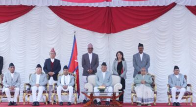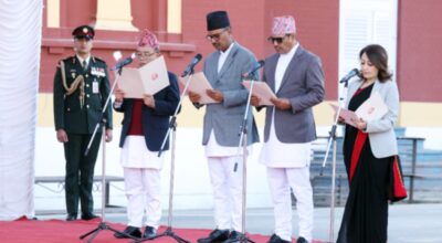 काठमाडौं, २६ मंसिर । नवनियुक्त मन्त्रीहरुले पद तथा गोपयिनताको शपथ लिएका छन् । प्रधानमन्त्री सुशीला