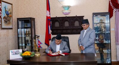 काठमाडौं, १८ चैत्र । राष्ट्रपति रामचन्द्र पौडेलले संघीय संसदको दुवै सदनको बैठकबाट पारित भई प्रमाणीकरणको