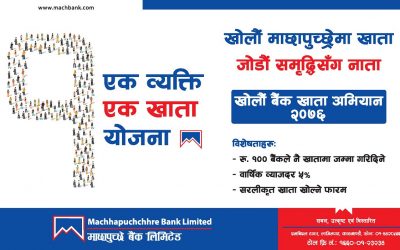 काठमाडौं, ४ बैशाख । माछापुच्छ्रे बैंकले नेपाल सरकारको ‘खोलौ बैंक खाता अभियान, २०७६’ अन्तर्गत ‘एक