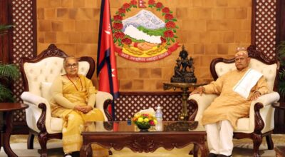 काठमाडौं, १९ कार्तिक । प्रधानमन्त्री सुशीला कार्की र पूर्वराष्ट्रपति डा रामवरण यादवबीच आज शिष्टाचार भेटवार्ता