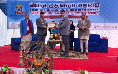 काठमाडौं, २९ मंसिर । क्रियशन क्राफ्टका सञ्चालक अशोकराज पाण्डे उत्कृष्ट शिसाजन्य हस्तकला निर्यातकर्ता बनेका छन्