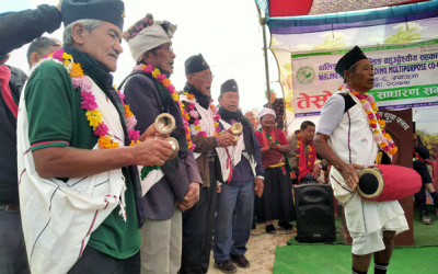 वालिङ (स्याङ्जा), २५ मङ्सिर । गाउँमा रहेका वृद्धवृद्धा आफ्ना कलिला नातिनातिनासहित मञ्चमा उपस्थित भएर कार्यक्रम
