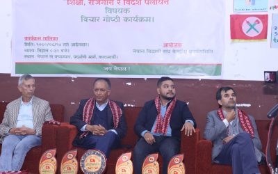 काठमाडौं, २४ मंसिर । नेपाली कांग्रेस निकट विद्यार्थी संगठन नेपाल विद्यार्थी संघद्वारा आयोजित ‘शिक्षा, रोजगारी