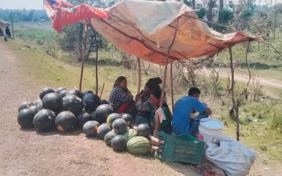 बेदकोट, ३१ वैशाख । महेन्द्र राजमार्ग छेउमै लहरै छन्, स–साना छाप्रा । अघिल्तिर भरिभराउ तरभुजा