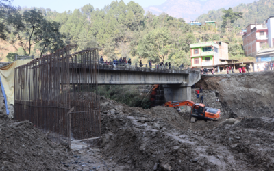 खोटाङ, १३ मङ्सिर । सगरमाथा राष्ट्रिय लोकमार्गअन्तर्गत दिक्तेल–गाईघाट खण्डको फोक्सिङटारस्थित सुनकोसी नदीमा अस्थायी बेलिब्रिज जडान