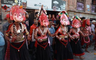 काठमाडौँ,३० साउन । मध्यपुर थिमि बोडेको ऐतिहासिक नीलबाराही गण नाच प्रदर्शन गर्दै । यो नाच