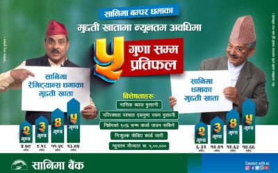 काठमाडौं, २ साउन । नयाँ आर्थिक वर्षलाई लक्षित गर्दै सानिमा बैंकले सम्पूर्ण निक्षेप खाताहरुमा मासिक
