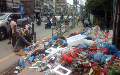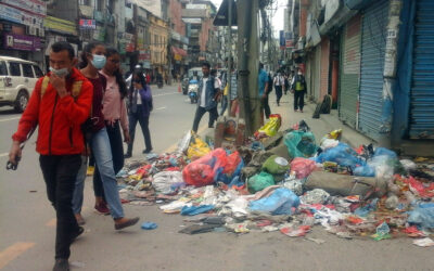 काठमाडौँ,१९ असार । राजधानीको पुतलीसडकस्थित पैदलमार्ग (फुटपाथ) मा थुपारिएको फोहोर । काठमाडौँ महानगरपालिकाबाट यस क्षेत्रको