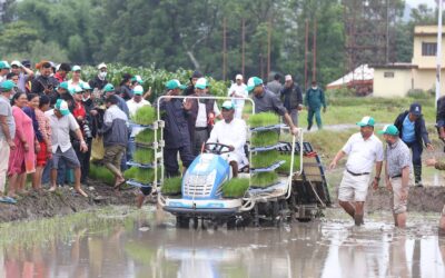 काठमाडौं, १५ असार । कृषि तथा पशुपंक्षी विकास मन्त्री महिन्द्र राय यादवले मेसिन चलाएर धान