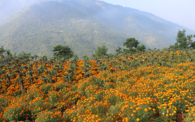 मन्थली (रामेछाप) ५ कात्तिक । फल लाग्ने अवस्थाको ड्रागन फ्रुटको बोट र त्यससँगै रोपिएको सयपत्रीको