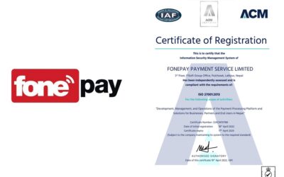 काठमाडौं, ११ जेठ । नेपालको आग्रणी भुक्तानी प्रणाली सञ्चालक फोनपे पेमेन्ट सर्विस लिमिटेड आइएसओ २७००१ः२०१३