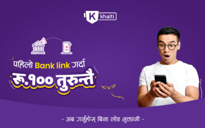 काठमाडौं, १० चैत्र । खल्ती डिजिटल वालेटले खल्तीमा पहिलो पटक बैंक लिंक गरेमा १०० रुपैयाँ