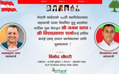 काठमाडौं, १ पुस । नेपाली काँग्रेसका नेता तथा व्यवसायी विनोद चौधरीले नेपाली काँग्रेसको १४औं महाधिवेशनमा